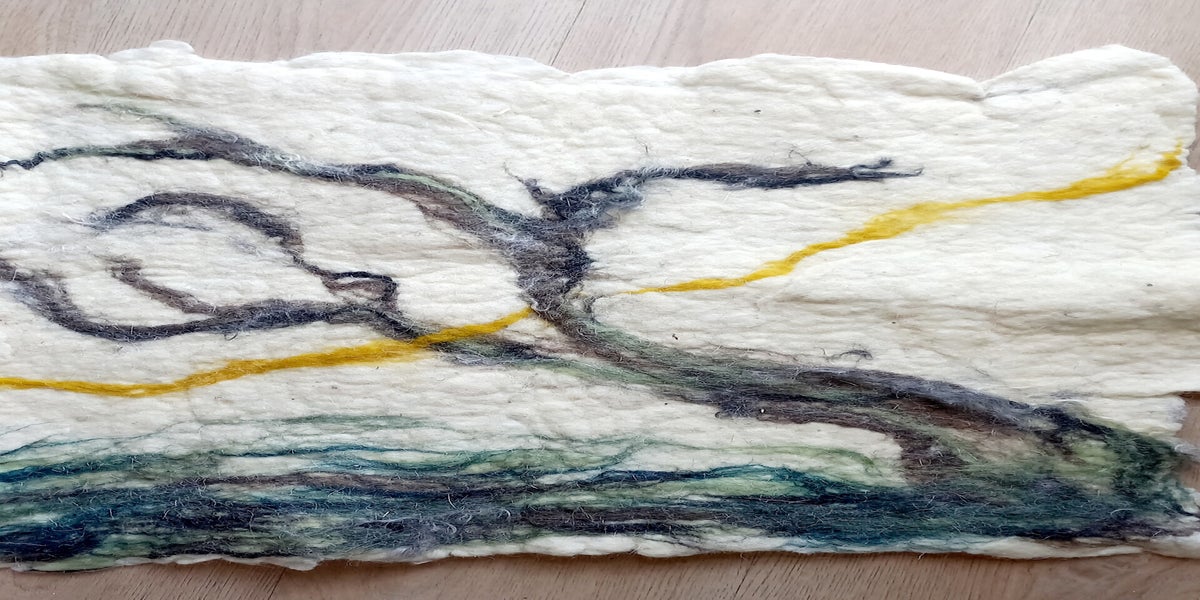 Felting is a craft. Using pure sheep's wool, soap, and warm water, I essentially "paint" with wool. I enjoy working on large scales, including commissioned pieces.